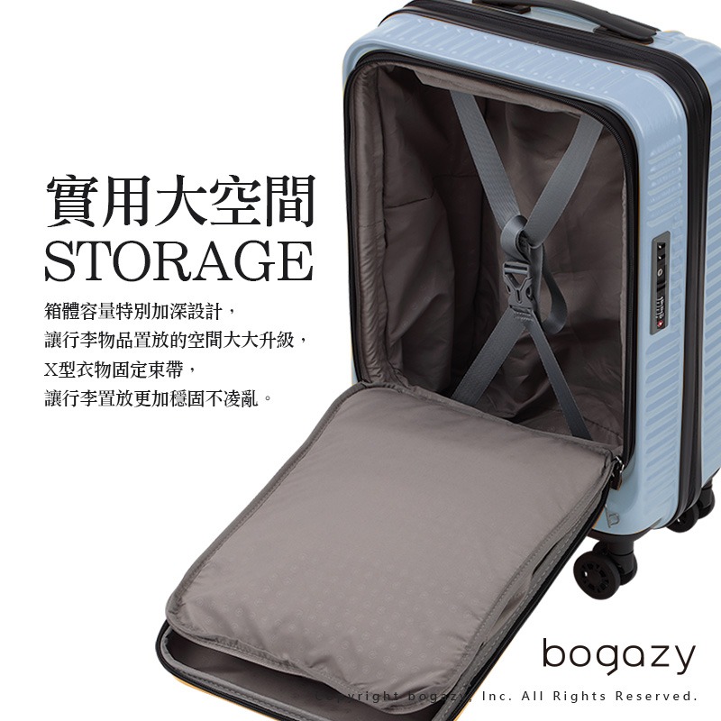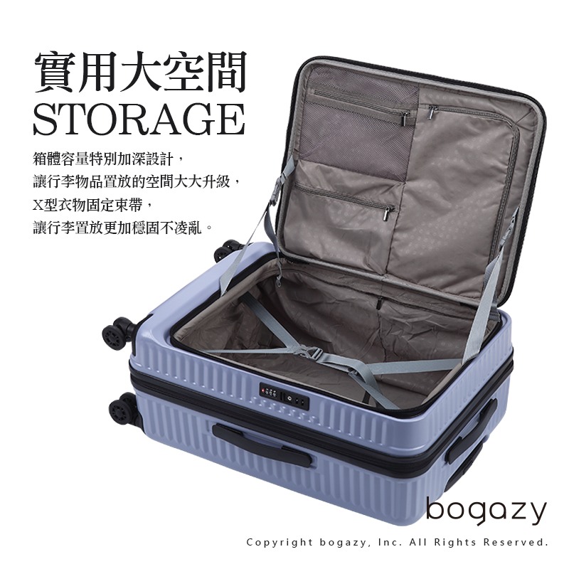 箱體容量特別加深設計,讓行李物品置放的空間大大升級,X型衣物固定束帶,讓行李置放更加穩固不凌亂。